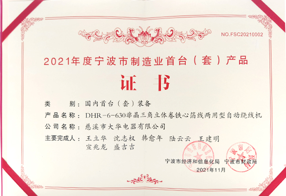 慈溪市ty8天游平台登录有限公司创建于二OO一年十一月,位于杭州湾跨海大桥南岸所在地浙江省慈溪市庵东镇工业园区纬二路699号,公司主要生产拥有自主知识产权的箔绕机、非晶自排线绕线机、非晶铁芯装配台、三角立体卷铁芯箔绕机、三角立体卷铁芯(自排线)卧绕机、三角立体卷铁芯开片机、铁芯卷绕机、箔带两用型绕线机、带料拼箔式绕线机等产品。目前,箔绕机产销量居国内同行首位。公司针对同行业中普遍存在的缺陷,进行大胆创新,实现了箔绕机原理上的重大突破,独创了“箔绕全程不偏,箔带两用,带料拼箔”的全新技术,使设备性能得到了极大的提升,本公司DHR-4型箔绕机曾创下8小时绕制30个箔式线圈的记录。