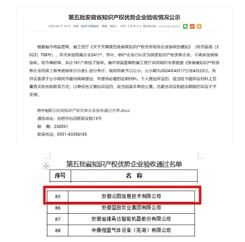 ? ? ? 近日,安徽省市场监督管理局公布了第五批安徽省知识产权优势培育企业验收情况公示。安徽ty8天游平台登录信息技术有限公司成功通过验收,获评第五批“安徽省知识产权优势企业”。